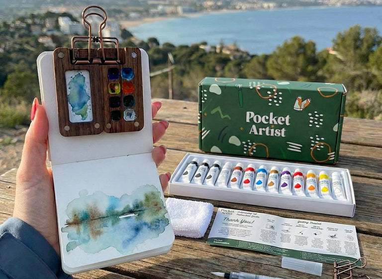 Dive into the world of color with Pocket Artist's Watercolor Kit - your ticket to creative bliss. Perfect for beginners, this thoughtfully curated set makes it easy to pick up a brush and let stress melt away. Your next masterpiece awaits!